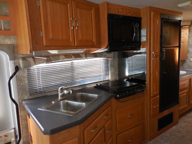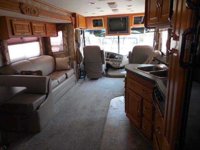 This 2006 Aurora has a V10 Ford Engine On a Ford Chassis, 2 Slide-outs, Onan Gas Generator, 2 Ducted Roof A/Cs, Levelers, Double Door Refrigerator, Main & Slide Awnings, Washer/Dryer, Backup Camera, CD Radio, Outside Stereo, 2 TVs, DVD Player, Outside Shower, Convection Microwave, 3 Burner Range and a driver side door. Never miss home while on the road. Take a ride to your favorite destination in style.