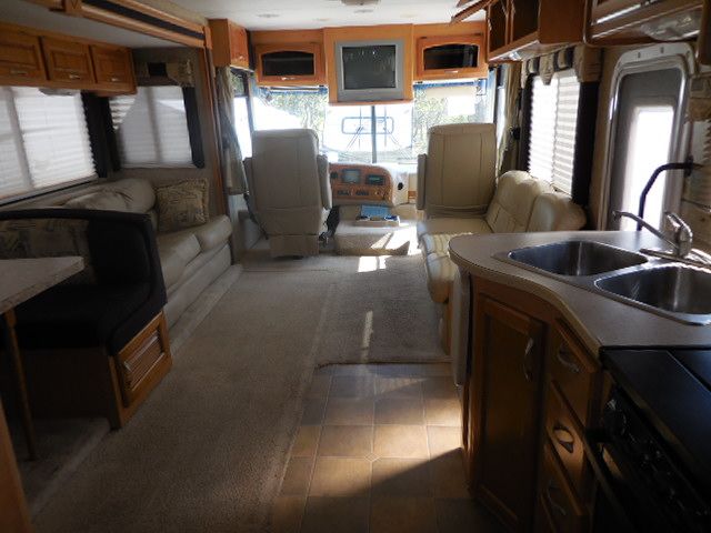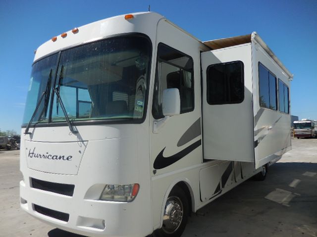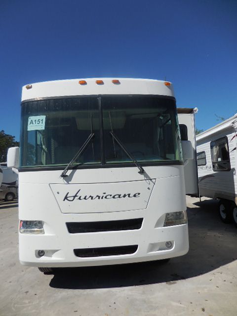 This 2006 Hurricane has a Triton V10 Ford Engine On a Ford Chassis, 1 Slide-out, Onan Gas Generator, 2 Ducted Roof A/Cs, Levelers, Double Door Refrigerator, Main & Slide Awnings, Backup Camera, Cassette/CD Radio, TV, DVD Player, Outside Shower, Microwave, Oven. Open floorplan with plenty of upfront seating. Let's go RVing!