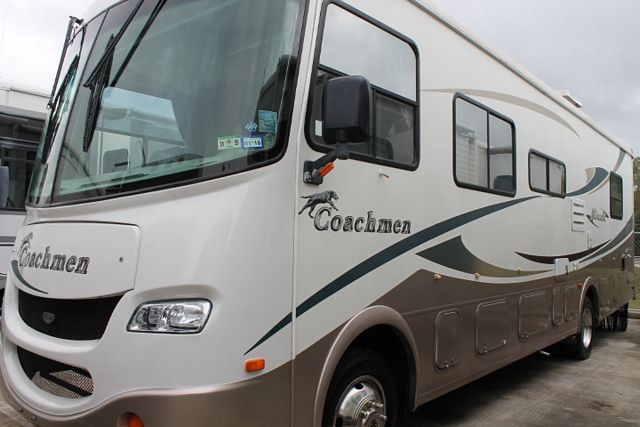 This 2005 Coachmen Mirada has a V10 Ford Engine On a Ford F53 Chassis, Options include....Onan Gas Generator, 2 Ducted Roof A/Cs, Double Door Refrigerator, Main Awning, Backup Camera, CD Radio, Heated Tanks, TV, DVD Player, Outside Shower, Microwave, 3 Burner Range and Oven. Life on the road will be a wonderful experience.