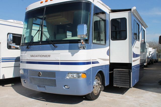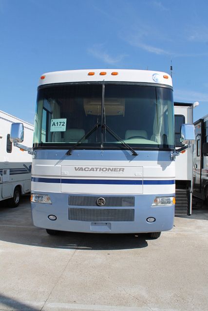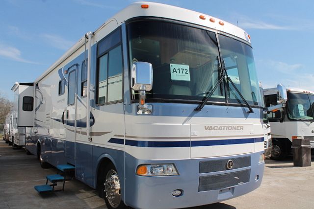 This 2004 Holiday Rambler Vacationer has plenty of closet/storage. It has a 8.1L Chevy Engine On a Workhorse Chassis, Features include....2 Slide-outs, Onan Gas Generator, 2 Ducted Roof A/Cs, Levelers, Double Door Refrigerator, Main/Win/Sld Awnings, Washer/Dryer, Backup Camera, CD Radio, Heated Tanks, Satellite Dish, TV, DVD Player, Satellite Radio, Outside Shower, Convection Microwave, 3 Burner Range and Oven. Nice coach, very well planned for comfort and leisure time! Stop by a for a test drive today!