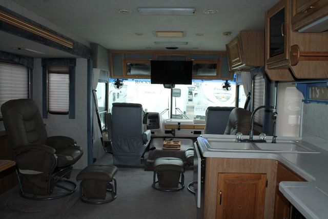 This 1996 Dolphin By National has a 460 Banks Powered Ford Engine and Chassis, Options include....Generac Gas Generator, 2 Ducted Roof A/Cs, Levelers, Double Door Refrigerator, Main/Win/Sld Awnings, Backup Camera, Cassette Radio, 2 TVs, Outside Shower, Convection Microwave and 3 Burner Range. Nice layout with a spacious bath area and large closet. Get out and travel this beautiful country by RV!