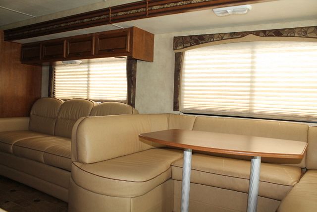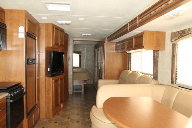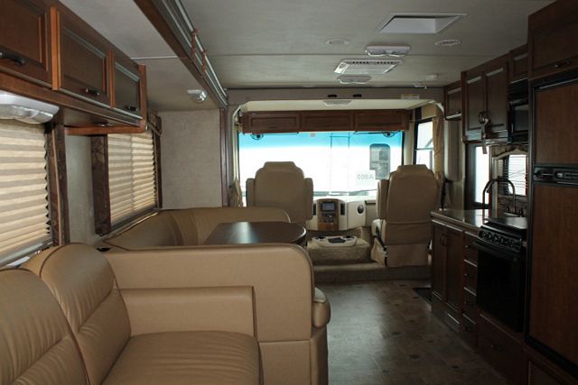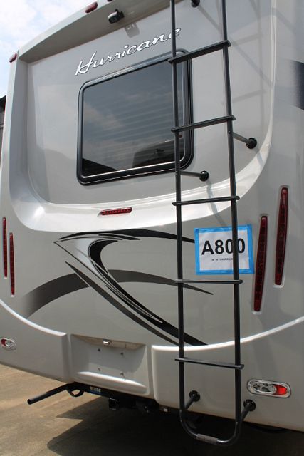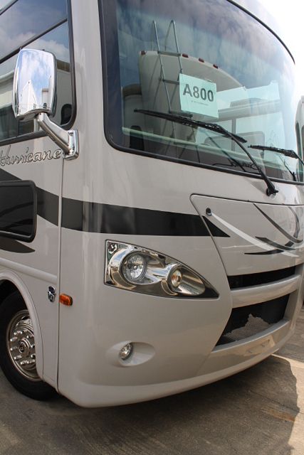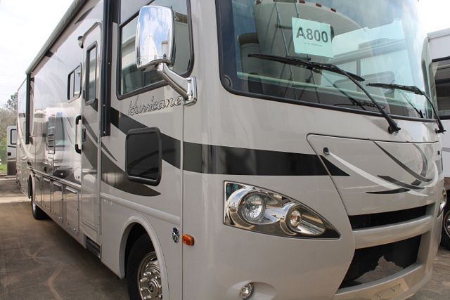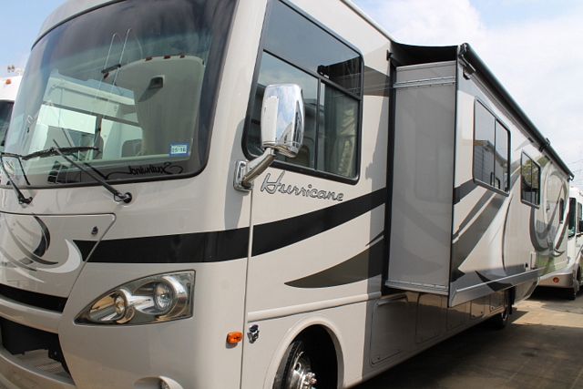 Wow! Mega Slide! This 2013 Hurricane By Thor has an Overhead Electric Bed above drivers seat with the full wall slide that really open this floor plan up. It has a V10 Ford Engine and Chassis with wonderful comforts that include.... 1 Slide-out, Onan Gas Generator, 2 Ducted Roof A/Cs, Levelers, Double Door Refrigerator, Main & Slide Awnings, Washer/Dryer, Backup and Side View Camera System, CD Radio, Heated Tanks, Outside Shower and Speakers, 3 TVs, DVD Player, Microwave, 3 Burner Range and Oven. Also includes: Dual Pane Windows, Outside Entertainment and BBQ Grill for hours of outdoor enjoyment. Go RVing!