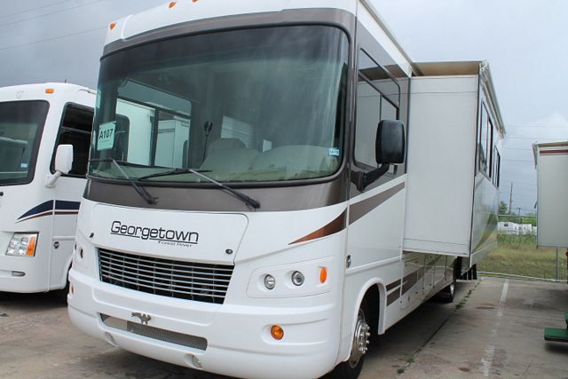 This 2011 Georgetown By Forest River has a comfortable floor plan with plenty of up front seating. It has a V-10 Ford Engine and Chassis, Features include....Onan Gas Generator, 2 Ducted Roof A/Cs, Levelers, Double Door Refrigerator, Main & Slide Awnings, Backup Camera, CD Radio, 2 TVs, Outside Shower, Microwave, 3 Burner Range and Oven. Hit the Highway and enjoy the wonderful views from this Georgetown.