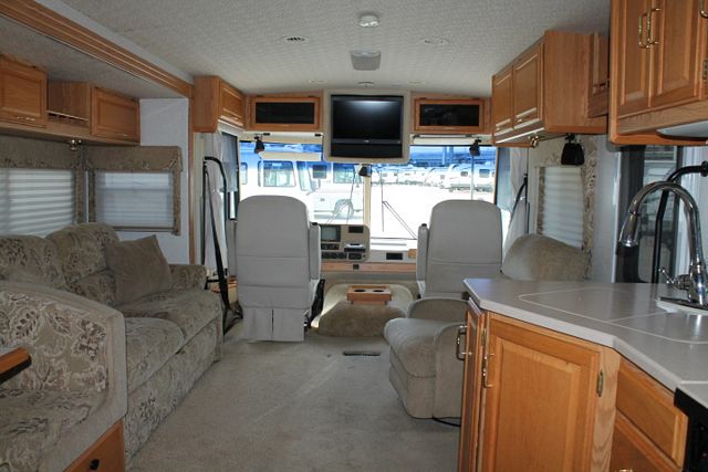New Tires! This 2002 Winnebago Adventurer has a nice floor plan with all the comforts needed. It has a V10 Ford Engine and Chassis, Options include....2 Slide-outs, Onan Gas Generator, Basement A/C, Levelers, Double Door Refrigerator, Main & Slide Awnings, Backup Camera, CD Radio, Satellite Dish & Receiver, 2 TVs, DVD Player, Outside Shower, Convection Microwave, 3 Burner Range and Oven. Hit the road to great adventures. Go RVing!
