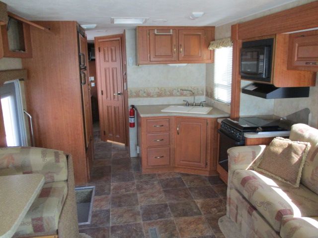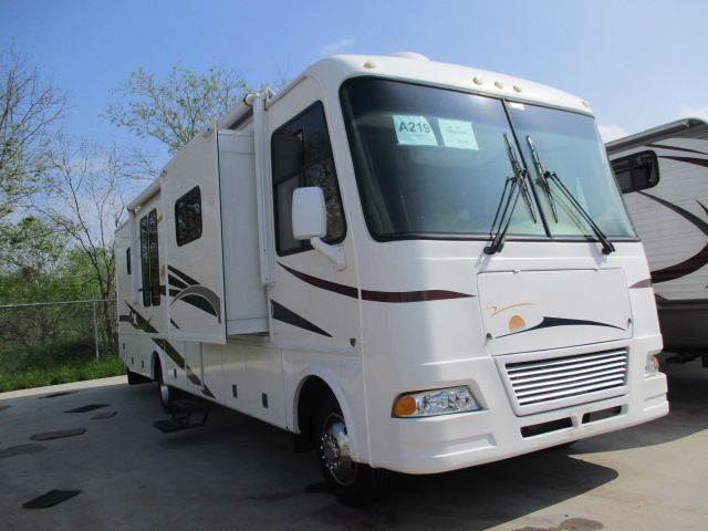 This 2007 Daybreak has a V10 Ford Engine On a Ford Chassis, 3 Slide-outs, Onan Gas Generator, 2 Ducted Roof A/Cs, Levelers, Double Door Refrigerator, Main & Slide Awnings, Backup Camera, CD Radio, Satellite Dish & Receiver, 2 TVs, DVD Player, Outside Shower, Convection Microwave, 3 Burner Range, Oven and new roof. Enjoy all the comforts in your home away from home. Let's go RVing!