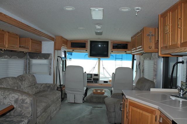 Hit The Open Highway with This 2002 Winnebago Adventurer. It has a V-10 Ford Engine and Chassis, Comforts include....2 Slide-outs, Onan Gas Generator, Basement A/C, Levelers, Double Door Refrigerator, Main/Win/Sld Awnings, Backup Camera, TV, DVD Player, Outside Shower, Convection Microwave and 3 Burner Range. Enjoy the wonderful views of the Country side By RV.