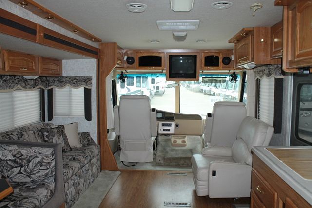 This 2001 Cruise Master By Georgie Boy is great for all of your traveling needs. It has V-10 Ford Engine and Chassis, Features include....2 Slide-outs, Onan Gas Generator, 2 Roof A/Cs, Levelers, Double Door Refrigerator, Main & Slide Awnings, Backup Camera, CD Radio, 2 TVs, DVD Player, Outside Shower, Microwave, 3 Burner Range and Oven. Enjoy your travels no matter the destination.