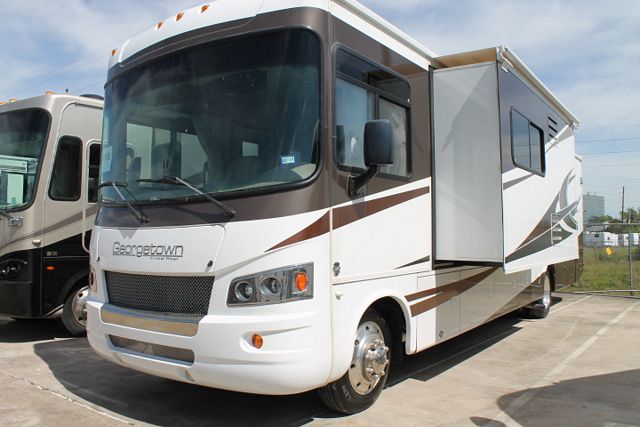 This 2011 Georgetown By Forest River has a really nice layout thats comfortable for everyone. It has a V10 Ford Engine and Chassis, Comforts include....3 Slide-outs, Onan Gas Generator, 2 Roof A/Cs, Levelers, Double Door Refrigerator, Main & Slide Awnings, Washer/Dryer, Backup Camera, CD Radio, Heated Tanks, In-Motion Satellite System, 2 TVs, DVD Player, Outside Shower, Microwave and 3 Burner Range. Get out and GO Traveling NOW!