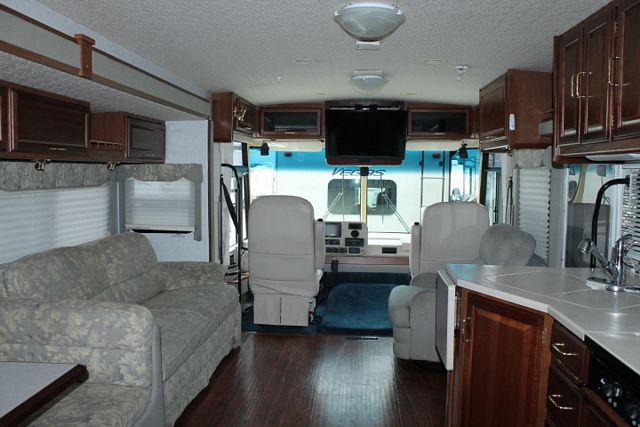 This Well Maintained 2003 Adventurer By Winnebago has a 8.1 Chevy Engine On a Workhorse Chassis, Comforts include....2 Slide-outs, Onan Gas Generator, Basement A/C with Heat Pump, Levelers, 4 Door Refrigerator with Ice Maker, Main & Slide Awnings, Washer/Dryer Connections, Backup Camera, 300 watt Inverter, CD Radio, Heated Tanks, 2 TVs, DVD Player, Outside Shower, Outside AM/FM/CD Stereo System, Convection Microwave and 3 Burner Range. Added in 2015: Front-Trac Bar and In 2015 Added Rear Koni shocks, Trac Bar and Safe-T-Plus Steering for a Smooth Ride. A Must See!