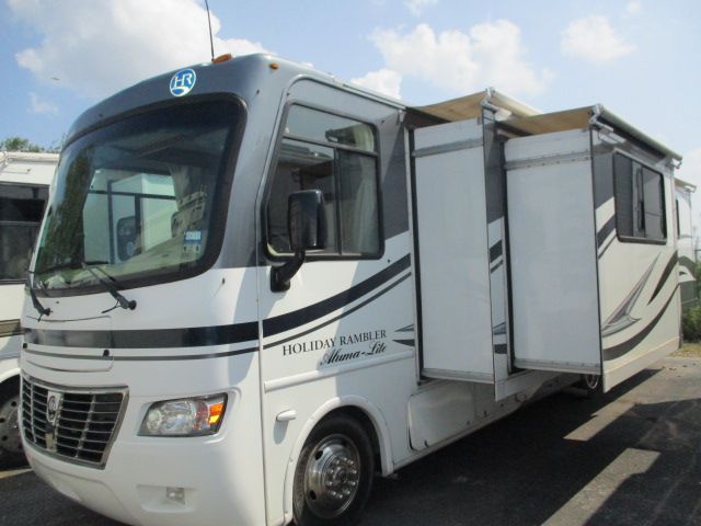 Great Floor Plan ! This 2012 Holiday Rambler Aluma-Lite feels like home with it's large sectional sofa for relaxing at the end of the day. It has a V10 Ford Engine and Chassis, Comforts include....2 Slide-outs, Onan Gas Generator, 1 Ducted Roof A/C, Levelers, Double Door Refrigerator, Main & Slide Awnings, Backup Camera, CD Radio, Satellite Dish & Receiver, 2 TVs, DVD Player, Outside Shower, Convection Microwave and 3 Burner Range. Don't Miss this wonderful Holiday Rambler!