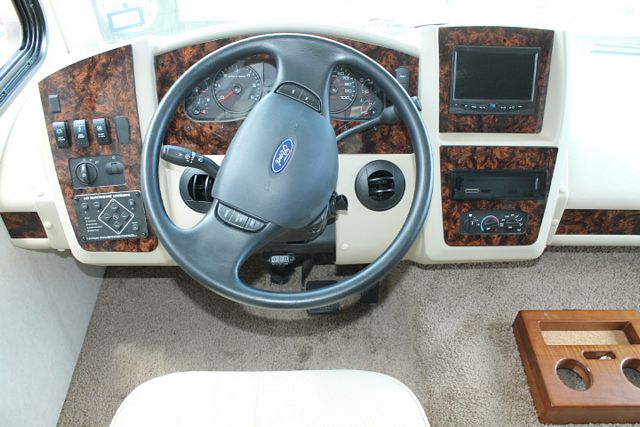Low Mileage ! Well Maintained 2014 Mirada By Forest River could be your next home. It has a V10 Ford Engine and Chassis, Comforts include....2 Slide-outs, Onan Gas Generator, 2 Ducted Roof A/Cs, Levelers, Double Door Refrigerator, Main & Slide Awnings, Backup Camera, CD Radio, Satellite Dish, 2 TVs, DVD Player, Outside Shower, Microwave, 3 Burner Range and Oven. Enjoy the views of our beautiful forest and lakes while traveling the USA!