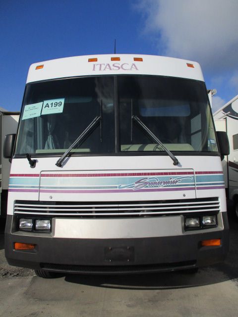 This 1998 Itasca Suncruiser could be your next home. It has a 7.5L V-8 245hp Ford Engine and Chassis. Options include....1 Slide-out, Onan Gas Generator, Levelers, Double Door Refrigerator, Main/Win/Sld Awnings, Cassette Radio, Satellite Dish, TV, Outside Shower, Microwave and Oven. This Coach has plenty of storage on the inside and outside. Enjoy the views while on the road to your favorite spot.