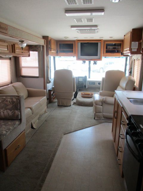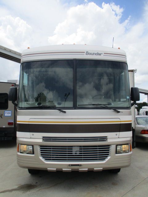 This 2005 Bounder By Fleetwood has all the comforts of home. It has a V-10 Ford Engine and Chassis, Features include....2 Slide-outs, Onan Gas Generator, 2 Roof A/Cs, Levelers, Double Door Refrigerator, Main/Win/Sld Awnings, Back-up Camera, CD Radio, 2 TVs, DVD Player, Outside Shower, Microwave, 3 Burner Range and Oven. Sleeps up to 6 and has plenty of up front seating. Let's go RVing !