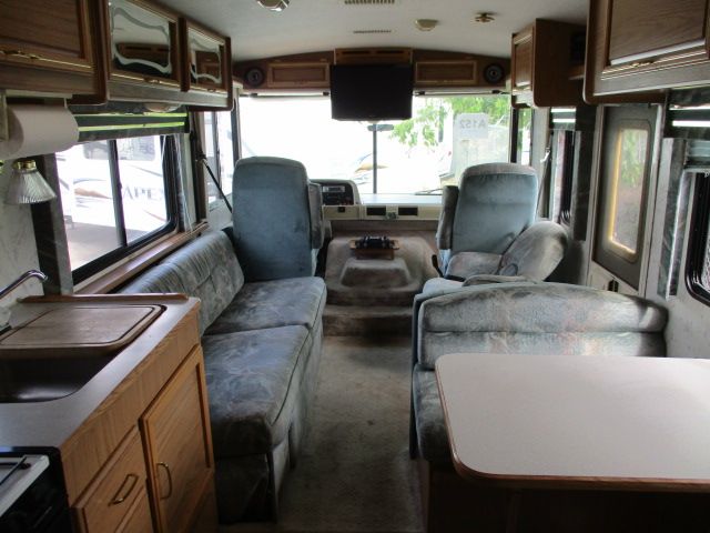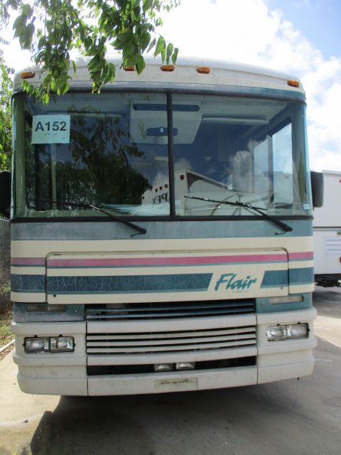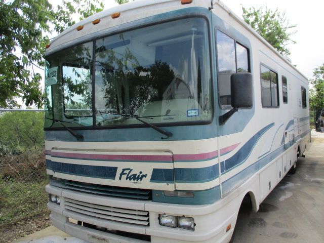 This 1996 Flair By Fleetwood has a 454 Chev Engine On a Chevy Chassis, Onan Gas Generator, 2 Ducted Roof A/Cs, 2 G/E Refrigerator, CD Radio, Satellite Dish, TV, DVD Player, Outside Shower, Microwave, 3 Burner Range, Oven