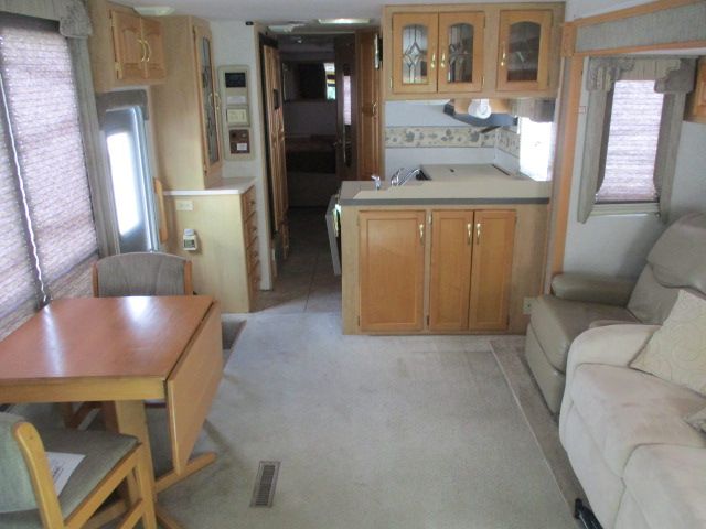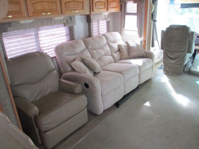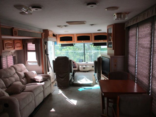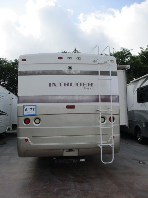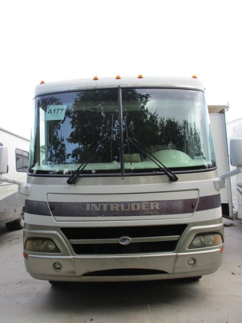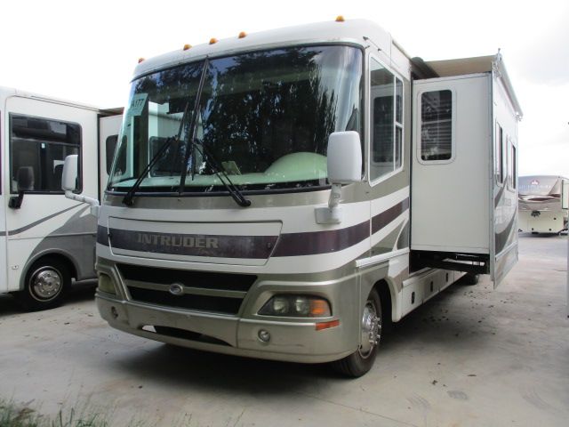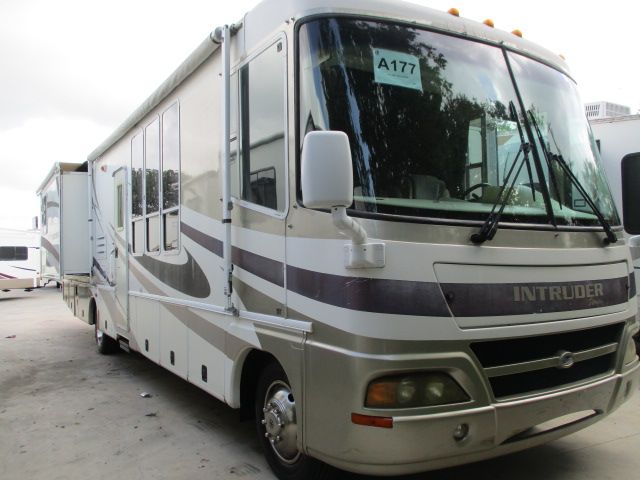 This 2003 Damon Intruder has a V-10 Ford Engine On a Ford Chassis, 2 Slide-outs, Onan Gas Generator, 2 Ducted Roof A/Cs, Levelers, 2door/ Refrigerator, In-Fridge Ice Maker, Main & Slide Awnings, Backup Camera, CD Radio, Satellite Dish & Receiver, TV, Microwave, 3 Burner Range, Oven.. This RV is Sold AS IS. An Excellent bargain for the Handy Man. Fix the Flaws and Hit the Road with this LOW Mileage Coach..
