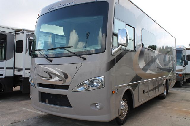 This Nearly New 2015 Thor Hurricane has been well maintained and has a low mileage V-10 Ford Engine and Chassis, Options include....1 Slide-out, Onan Gas Generator, 1 Roof A/C, Levelers, Double Door Refrigerator, Main & Slide Awnings, Backup and Side View Camera System, CD Radio, Heated Tanks, Outside Shower and Speakers, TV, DVD Player, Microwave and 3 Burner Range. Also includes Roof Vent Covers, Steer Safe, Dual Pane Windows and so much more. Stop by for a Test Drive Today !