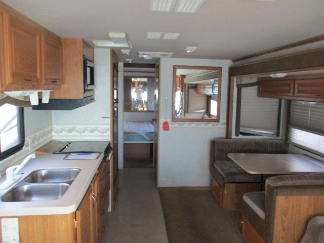 Travel in comfort in This 2003 Bounder has a V10 Ford Engine On a Ford Chassis, 2 Slide-outs, Onan Gas Generator, 2 Ducted Roof A/Cs, Levelers, Double Door G/E Refrigerator, Main Awning, Backup Camera, CD Radio, 2 TVs, Microwave, 3 Burner Range. Your journey will be a delight!