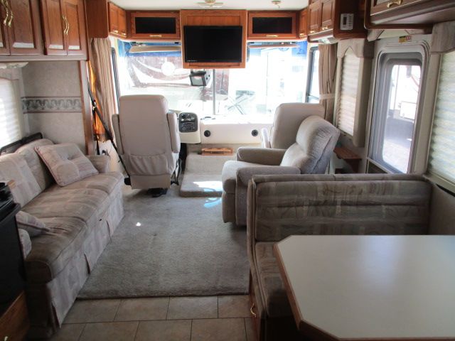 This 2002 Allegro By Tiffin has a 8.1 Chevy Engine On a Workhorse Chassis, 2 Slide-outs, Onan Gas Generator, 2 Ducted Roof A/Cs, Levelers, Double Door Refrigerator, In-Fridge Ice Maker, Main/Win/Sld Awnings, Backup Camera, CD Radio, Satellite Dish, TV, DVD Player, Outside Shower, Microwave, 3 Burner Range, Oven. Clean coach for those dream trips. Let's go RVing!