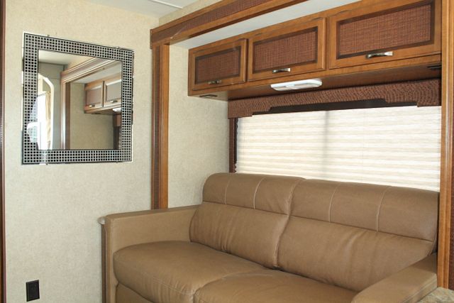 Wow! Easy to get around town in and easy to walk around in while traveling. This 2015 Thor Axis is great for all of your travels. It has a 6.8liter V-10 Ford Engine and Chassis, Options include....1 Slide-out, Onan Gas Generator, 1 Ducted Roof A/C, Double Door Refrigerator, Main Awning, Backup Camera, CD Radio, Heated Tanks, 3 TVs, DVD Player, Outside Shower, Microwave and 3 Burner Range. A MUST SEE!