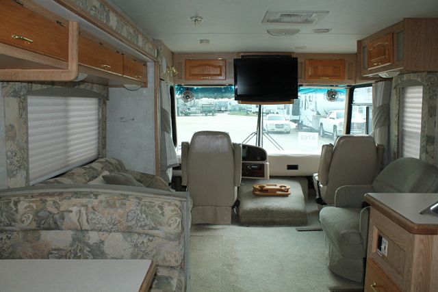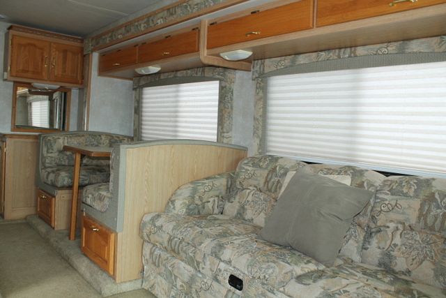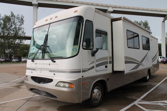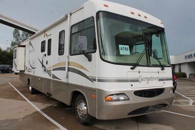 This 2002 Georgetown By Forest River could be your next RV. It has a V-10 Ford Engine and Chassis, Options include....2 Slide-outs, Onan Gas Generator, 2 Ducted Roof A/Cs, Levelers, Double Door Refrigerator, Main & Slide Awnings, Backup Camera, CD Radio, Heated Tanks, TV, DVD Player, Outside Shower, Microwave, 3 Burner Range and Oven. Enjoy your travels and the wonderul views from this comfortable Georgetown.