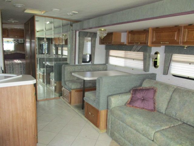 This 1999 Allegro Bay By Tiffin has a V8 Ford Engine On a Ford Chassis, 1 Slide-out, Onan Gas Generator, 2 Ducted Roof A/Cs, Levelers, Double Door Refrigerator, In-Fridge Ice Maker, Main & Slide Awnings, Backup Camera, Cassette Radio, Satellite Dish, TV, Outside Shower, Convection Microwave, 3 Burner Range, Oven, Stone Guard, Tow Bar at the Rear in Included.. Perfect for the First Time Class A-er..