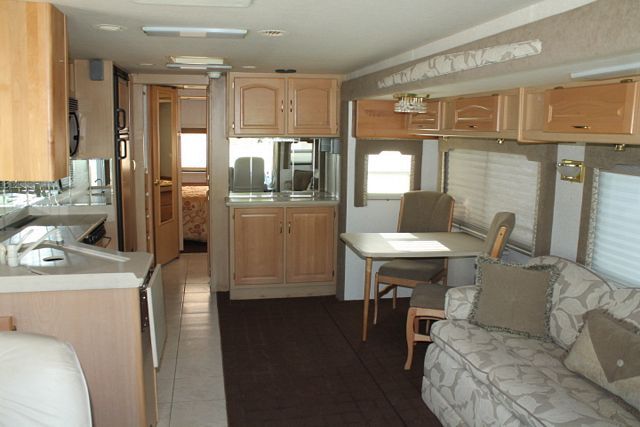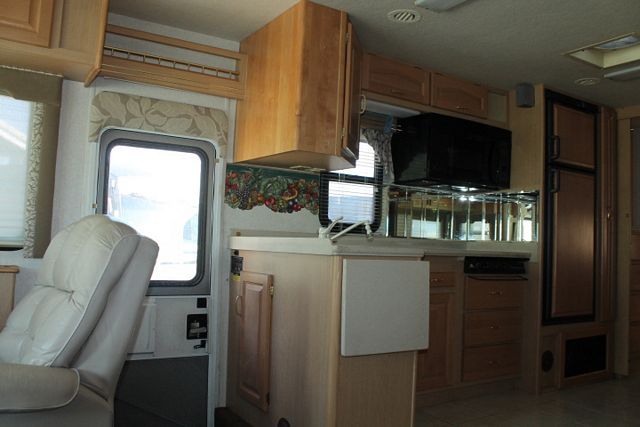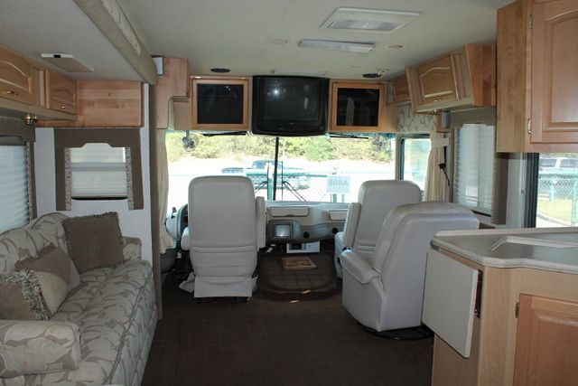 This 2003 Dolphin By National RV has a 8.1liter Chevy Engine On a Workhorse Chassis, Options include....2 Slide-outs, Onan Gas Generator, 2 Roof A/Cs, Levelers, Double Door Refrigerator, Main/Win/Sld Awnings, Backup Camera, CD Radio, Surround Sound,DVD Player, Outside Shower, Icemaker, Convection Microwave and 3 Burner Range. Enjoy the amazing views in the comforts of this Dolphin LX.