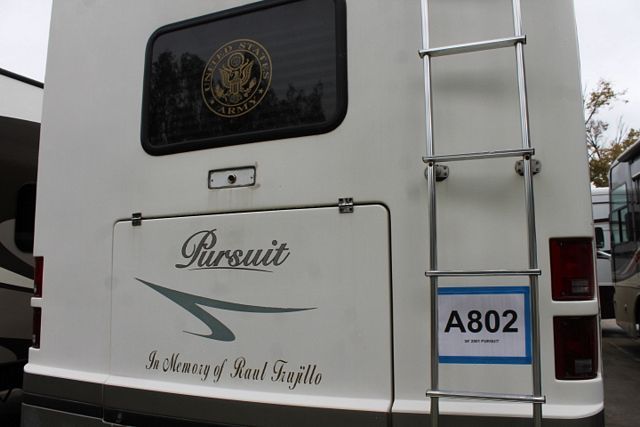This 2001 Pursuit could be your next home. It has a V10 Ford Engine and Chassis. Features include....1 Slide-out, 5000W Onan Gas Generator, 2 Non-Ducted Air Conditioners, Levelers, Double Door Gas/110V Refrigerator, Main/Slide Awnings, Backup Camera, CD Radio, Heated Tanks, Outside Shower, Microwave, 3 Burner Range and Oven. Head out on the open highway to some wonderful adventures.