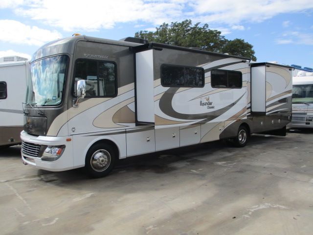 This 2012 Bounder has a 6.8 Ford Engine On a Ford Chassis, 3 Slide-outs, Onan Gas Generator, 2 Ducted Air Conditioners, Levelers, Double Door Gas/110V Dometic Refrigerator, Main, Slide Awnings, Backup Camera, CD Radio, 2 TVs, DVD Player, Satellite Radio, Outside Shower, Convection Microwave, 3 Burner Range, Oven, Window Sreening for the Windshield, Mud Flap, Max Air Covers, Bath and 1/2. Great RV for the Cross Roads Traveler.