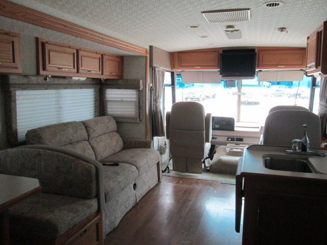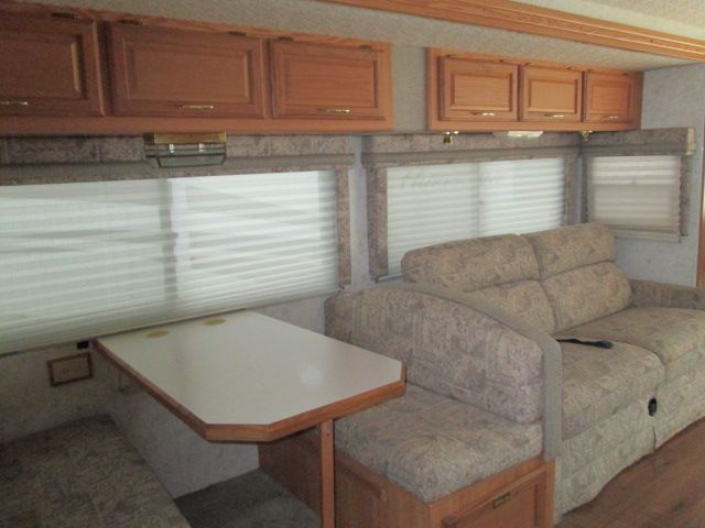 This 2001 Winnebago Brave has a nice layout for all of your adventures. It has a V-10 Ford Engine and Chassis, Options include....1 Slide-out, Onan Gas Generator, 2 Ducted Air Conditioners, Levelers, Double Door Gas/110V Refrigerator, Main/Slide Awnings, CD Radio, Heated Tanks, Satellite Dish & Receiver, 2 TVs, Outside Shower, Microwave, 3 Burner Range and Oven. Head out on the open highway in This Winnebago Brave.