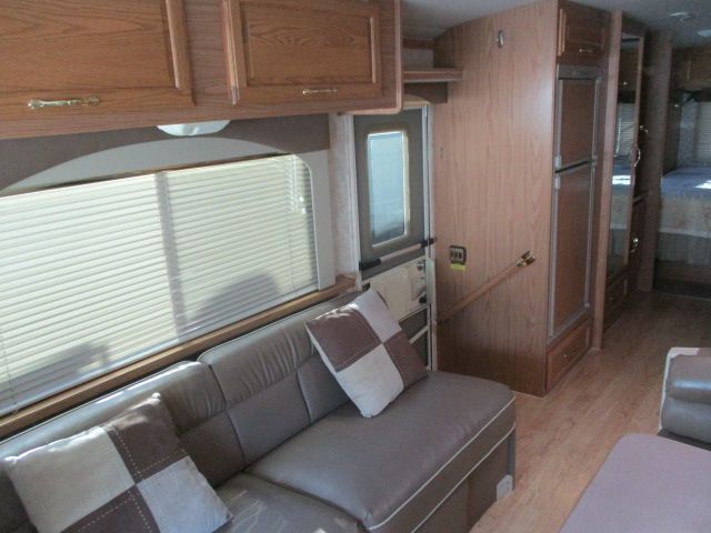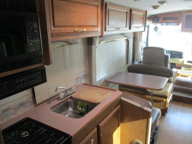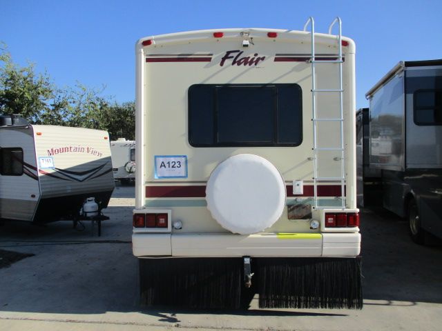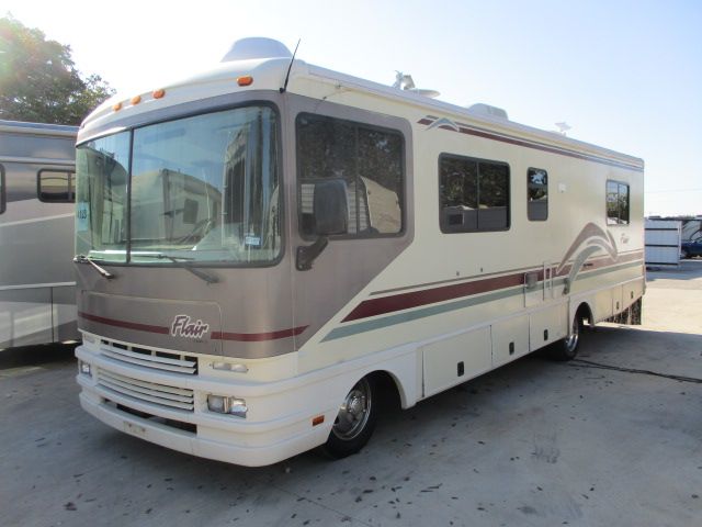 This 1997 Flair By Fleetwood has a 4000W Onan Gas Generator, 1 Ducted Air Conditioner, Levelers, Double Door Gas/110V Dometic Refrigerator, Main Awning, Backup Camera, CD Radio, Solar Panel, Satellite Dish & Receiver, TV, DVD Player, Outside Shower, Microwave, 3 Burner Range, Oven