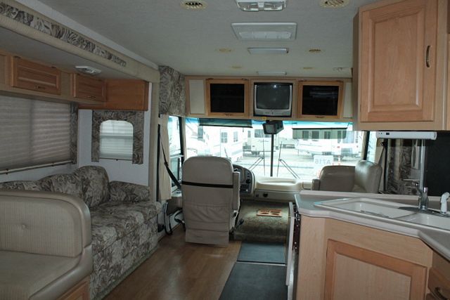 This 2003 Sea Breeze By National has a V-10 Ford Engine and Chassis, Options include ....2 Slide-outs, 5500W Onan Gas Generator, 2 Ducted Air Conditioners, Levelers, Double Door Gas/110V Refrigerator, Main/Slide Awnings, Backup Camera, CD Radio, Satellite Dish, 2 TVs, DVD Player, Outside Shower, Convection Microwave and 3 Burner Range. A wonderful floor plan for all of your travels.