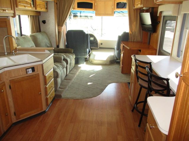 This 1999 Georgie Boy has a V10 Ford Triton Engine and Chassis, Features include....1 Slide-out, 5500W Generac Gas Generator, 2 Ducted Air Conditioners, Levelers, Double Door Gas/110V Norcold Refrigerator, Backup Camera, Cassette Radio, 2 TVs, DVD Player, Outside Shower, Microwave, 3 Burner Range and Oven. Great Unit For Traveling Cross Country