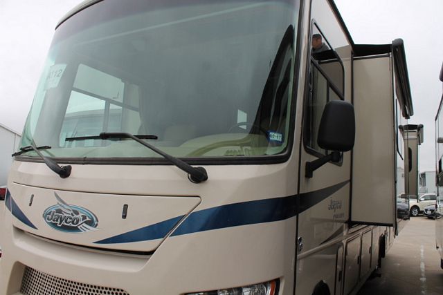 This 2014 Jayco Precept has a Low Mileage 6.8L V-10 Ford Engine and Chassis, It's Options include.... 3 Slide-outs, 5500W Onan Gas Generator, 2 Non-Ducted Air Conditioners, Levelers, 4 Door Gas/110V Refrigerator with Ice Maker, Automatic Main Awning And Window/Slide Awnings, Backup Camera, CD Radio, GPS System, Heated Tanks, Satellite Dish & Receiver, Outside Speakers, 3 TVs, DVD Player, Satellite Radio, Outside Shower, Convection Microwave and 3 Burner Range. Nice coach with plenty of Kitchen space and storage.
