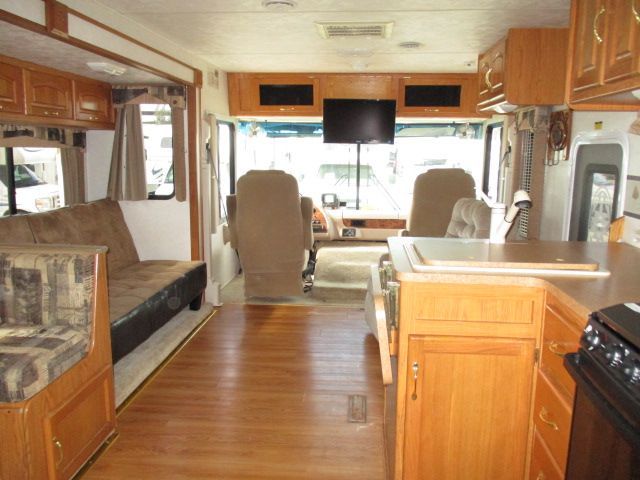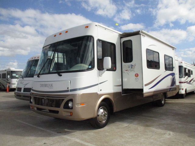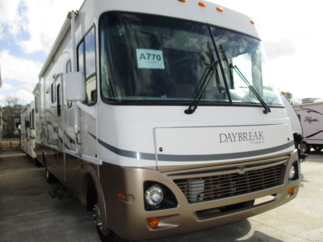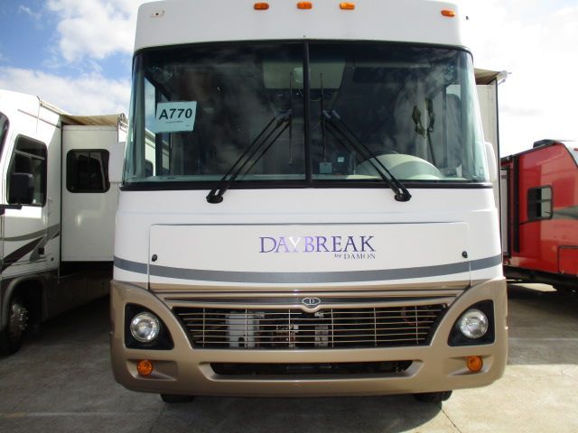 This 2004 Damon Daybreak could be your next RV. It has a V-10 Ford Engine On a Ford Chassis, Options include....2 Slide-outs, 5000W Generac Gas Generator, 1 Non-Ducted And 3 Ducted Air Conditioner, Levelers, Double Door Gas Refrigerator, Main/Slide Awnings, CD Radio, Heated Tanks, TV, DVD Player, Outside Shower, Microwave, 3 Burner Range and Oven. Plenty of storage space with sleeping accommodations for up to 6. Go Traveling!