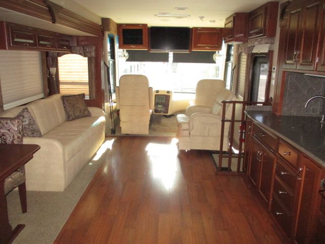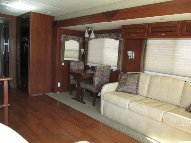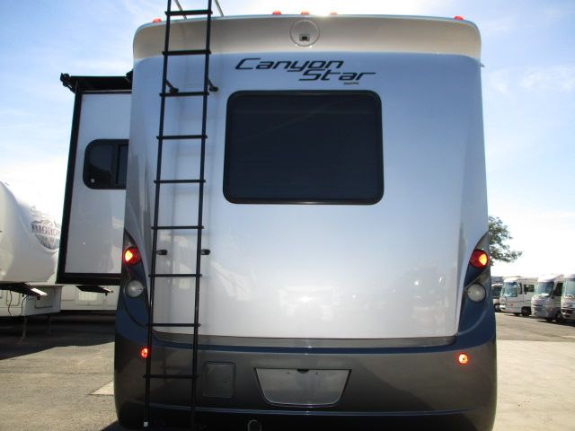 This 2011 Canyon Star has a V10 Ford Engine On a Ford Chassis, 3 Slide-outs, Onan Gas Generator, 2 Ducted Air Conditioners with Heat Pumps, Levelers, Double Door Gas/110V Norcold Refrigerator, In-Fridge Ice Maker, Automatic Main Awning And Slide Awning, Heated Tanks, Backup Camera, CD Radio, Satellite Dish, 3 TVs, 2 DVD Players, Satellite Radio, Outside Shower, Microwave, 3 Burner Range, Tinted Glass, Ready for the Cross Country Adventure.