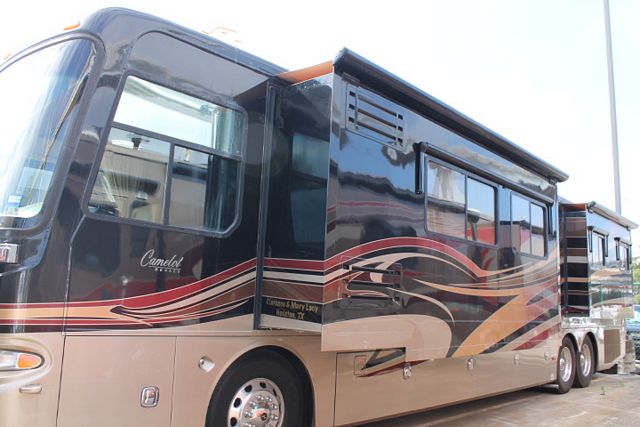 Travel In Comfort With This 2008 Camelot By Monaco A Quailty Built Rig. It Is Powered By A 400hp Cummins Engine On a Roadmaster Chassis With An Allison Transmission, Amenities Include.... Air Bag Suspension, Exhaust Brake, 4 Slide-outs, 10.0 Onan Diesel Generator, 3 Ducted Roof A/Cs, Automatic Levelers, Sbs Refrigerator With Water And Ice Maker In Door, Main/Win/Sld Awnings, 1 Piece Washer/Dryer, Backup Camera, CD Radio, Heated Tanks, Satellite Dish And Radio, 2 TVs, 2 DVD Players, Outside Shower, Convection Microwave And 3 Burner Range. Well Maintained And Loaded With Features Including This Wonderful King Size Bed For A Great Nights Rest.