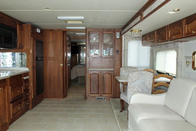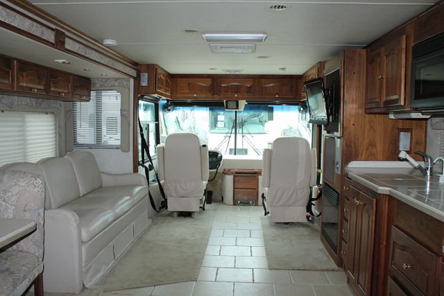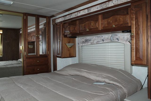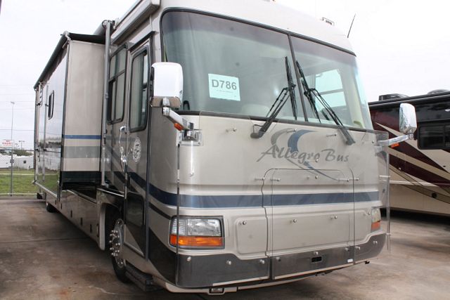 This 2002 Allegro Bus By Tiffin has a 350hp Cummins Engine On a Freightliner Chassis, Comforts include....Air Bag Suspension, Exhaust Brake, 3 Slide-outs, Onan Diesel Generator, 2 Ducted Roof A/Cs, Levelers, Double Door Refrigerator, Main & Slide Awnings, 1 Piece Washer/Dryer, Backup Camera, CD Radio, Inverter, Heated Tanks, 2 TVs, DVD Player, Outside Shower, Convection Microwave and 3 Burner Range.