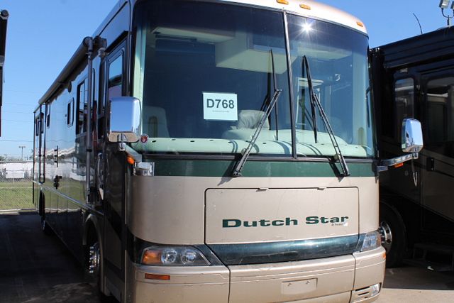 This 2003 Dutch Star By Newmar is powered by a 350hp 8.3l Cummins Engine On a Spartan Chassis, Comforts include....Air Bag Suspension, Exhaust Brake, 2 Slide-outs, Onan Diesel Generator, 2 Roof A/Cs, Corian Counter Tops, Levelers, Double Door Refrigerator, Main/Win/Sld Awnings, Entire Unit Water Filter System with Drink Dispenser, Thermal Pane Windows, Washer/Dryer Connections, Backup Camera, CD Radio, Heated Tanks, Basement Entertainment Center w/ AM/FM/CD Stereo, 2 TVs, DVD Player, Outside Shower, Convection Microwave, 3 Burner Range and Oven. Unit was Custom Built and Garage Kept When not in Use. Get out and Enjoy your Travels No Matter the Destination.