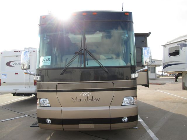 This 2005 Mandalay Has A 350hp Cummins Engine On A Freightliner Chassis, Amenities Include.. Air Bag Suspension, 3 Slide-Outs, Onan Diesel Generator, 2 Ducted Roof A/Cs, Levelers, Double Door Refrigerator, In-Fridge Ice Maker, Main & Slide Awnings, Washer/Dryer, Backup Camera, Cassette Radio, Inverter, Tracking Satellite System, TV, DVD Player, Outside Shower, Convection Microwave, 3 Burner Range And Oven And 2 Bathrooms. Ultimate Home On Wheels, Ideal For Long Road Trips! Bonus: Plenty Of Storage. Go RVing!!