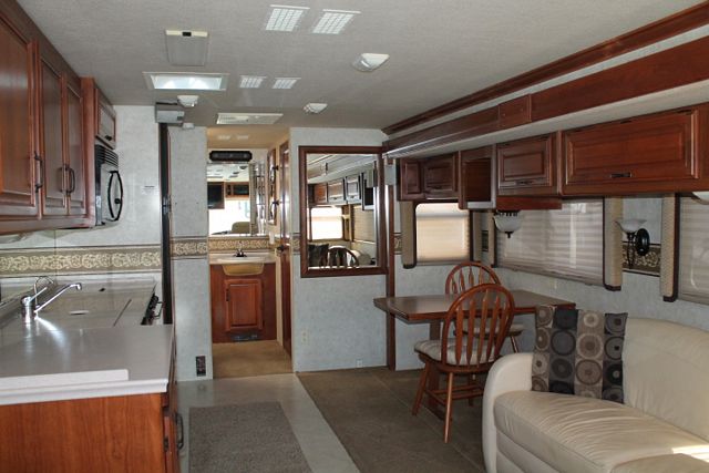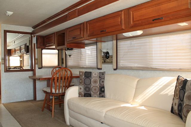This 2002 Discovery By Fleetwood has a nice size bedroom and bathroom. It Is powered by a 330hp Cat Engine On a Freightliner Chassis, Featurtes Include....Air Bag Suspension, 2 Slide-outs, Onan Diesel Generator, Exhaust Brake, 2 Ducted Roof A/Cs, Levelers, Four Door Refrigerator, In-Fridge Ice Maker, Main/Win/Sld Awnings, 1 piece Washer/Dryer, Backup Camera, Satellite Dish, CD Radio, 3 TVs, DVD Player, Outside Shower, Convection Microwave and 3 Burner Range. Get and travel with all the comforts home. Stop by for a test drive Today!