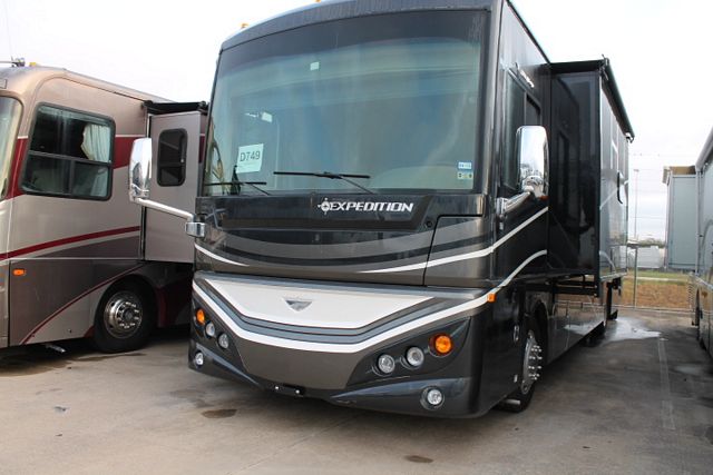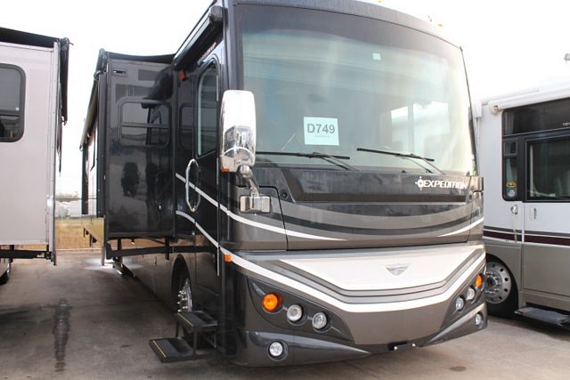 Beautiful Nearly New Bunkhouse floor plan. This 2015 Expedition By Fleetwood sleeps up to 8 and has a Mega Slide that really opens this Coach up. It is Powered by a 360hp Cummins Engine On a Freightliner Chassis, Amenities include....Air Bag Suspension, 2 Slide-outs, Onan Diesel Generator, 2 Ducted Roof A/Cs, Levelers, Double Door Refrigerator, Main & Slide Awnings, 2 Piece Washer/Dryer, Outside Shower, Backup and Side View Camera System, 4 CD Radios, GPS System, Heated Tanks, 6 TVs, 4 DVD Players, Convection Microwave and 3 Burner Range. Also Includes Outside Entertainment Center with Speakers. Perfectly Designed with Families in mind.