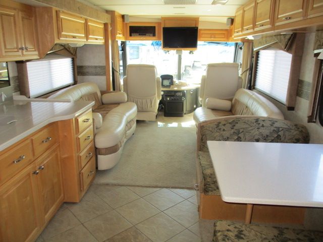 This 2003 Revolution By Fleetwood has a 350hp Cummins Engine On a Freightliner Chassis, Exhaust Brake, 2 Slide-outs, Onan Diesel Generator, 2 Ducted Roof A/Cs, Levelers, 4 Door Refrigerator, In-Fridge Ice Maker, Main/Win/Sld Awnings, Washer/Dryer, Backup Camera, CD Radio, Inverter, Satellite Dish, Outside Speakers, 2 TVs, DVD Player, Outside Shower, Convection Microwave, 3 Burner Range and full body paint. Enjoy all the luxury of your home while on the road with this motorhome. Let's go RVing!