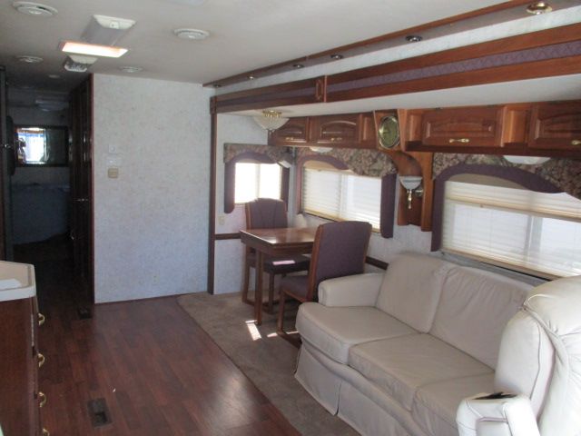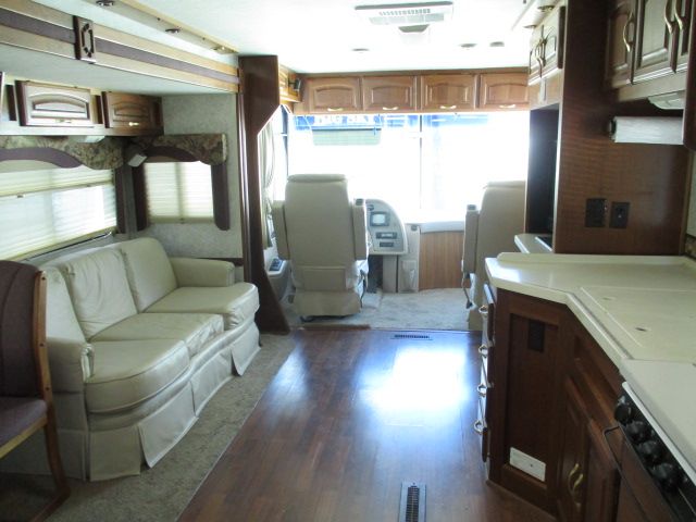 This 2002 Cruise Air Xl has a 300 Cat Engine On a Freightliner Chassis, Air Bag Suspension, Exhaust Brake, 2 Slide-outs, Onan Diesel Generator, 2 New Roof A/Cs, Levelers, 4door/ Refrigerator, In-Fridge Ice Maker, Main/Win/Sld Awnings, Washer/Dryer Connections, Backup Camera, CD Radio, Inverter, Heated Tanks, Satellite Receiver, TV, DVD Player, Outside Shower, Convection Microwave, 3 Burner Range,