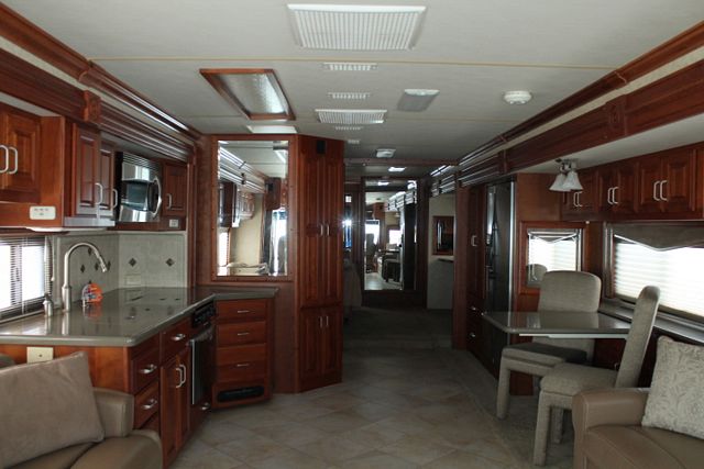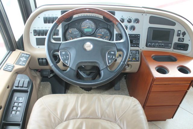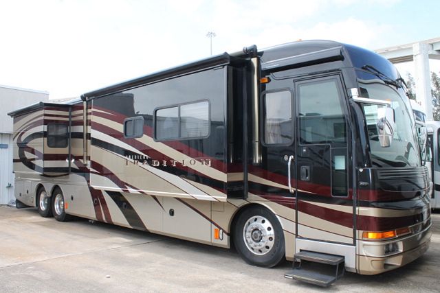 Full wall Slide with Bath and Half ! This 2007 American Tradition By Fleetwood has all the comforts of home. It is powered by a 400hp Cummins Engine On a Spartan Chassis, Amenities include....Air Bag Suspension, Exhaust Brake, 3 Slide-outs, Onan Diesel Generator, 3 Ducted Roof A/Cs, Hydro Hot Water System, Levelers, S/B/S Refrigerator, In-Fridge Ice Maker, Main & Slide Awnings, 1 Piece Washer/Dryer, Backup and Side View Camera System, 2 CD Radios, Dishwasher, Outside Entertainment System, 3 TVs, 2 DVD Players, Outside Shower, Convection Microwave and 3 Burner Range. Retreat to your own private oasis in the American Tradition.