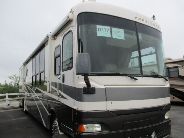 This 2003 Providence By Fleetwood has a 330hp Cat Engine On a Freightliner Chassis, Air Bag Suspension, Exhaust Brake, 2 Slide-outs, Onan Diesel Generator, 2 Ducted Roof A/Cs, Levelers, 4 Door Refrigerator, In-Fridge Ice Maker, Main & Slide Awnings, Backup Camera, CD Radio, Inverter, Satellite Dish, 2 TVs, Outside Shower, Convection Microwave, 3 Burner Range. Enjoy the comforts of home away from home. Let's go RVing!