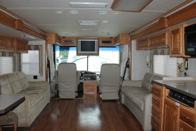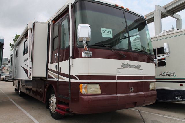 This 2004 Holiday Rambler Ambassador has a 330hp Cummins Engine On a Roadmaster Chassis, Comforts include....Air Bag Suspension, 4 Slide-outs, Onan Diesel Generator, 2 Roof A/Cs, Levelers, 4 Door Refrigerator, Main/Win/Sld Awnings, 1 Piece Washer/Dryer, Backup Camera, CD Radio, Satellite Dish, 2 TVs, DVD Player, Outside Shower, Convection Microwave and 3 Burner Range. Enjoy your travels no matter the destination.