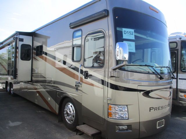 This 2009 Presidio has a 360hp Cummins Engine On a Freightliner Chassis, Air Bag Suspension, Exhaust Brake, 3 Slide-outs, Onan Diesel Generator, 3 Ducted Roof A/Cs, Levelers, 4 Door Refrigerator, In-Fridge Ice Maker, Main & Window Awnings, Washer/Dryer Connections, Backup Camera, CD Radio, Inverter, Satellite Dish, Outside Entertainment System, 3 TVs, DVD Player, Outside Shower, Convection Microwave, 3 Burner Range Travel the USA in style with all the comforts of home. Let's go RVing!