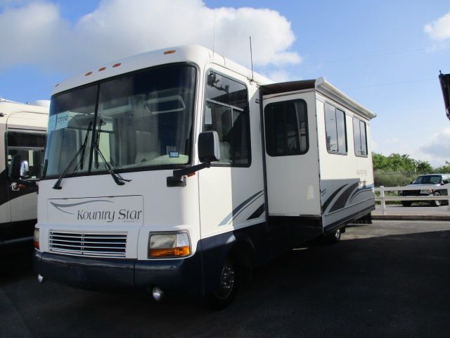 This 1997 Kountry Star By Newmar has a 1 Slide-out, Onan Diesel Generator, 2 Ducted Roof A/Cs, Levelers, 2 G/E Refrigerator, Main & Slide Awnings, CD Radio, 2 TVs, Microwave, 3 Burner Range, Oven, Front Engine Diesel.