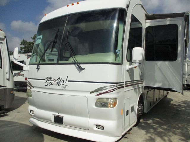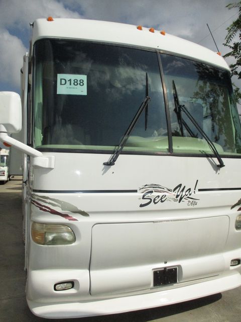 This 2006 See-Ya has a 350hp Cat C7 Engine On a Freightliner Chassis, Air Bag Suspension, 3 Slide-outs, Guadian Diesel Generator, Basement A/C, Levelers, 4 G/E Refrigerator, In-Fridge Ice Maker, Main/Win/Sld Awnings, Washer/Dryer, Backup Camera, CD Radio, Satellite Dish & Receiver, 3 TVs, DVD Player, Outside Shower, Microwave, 3 Burner Range, Oven
