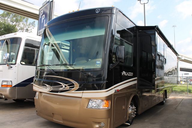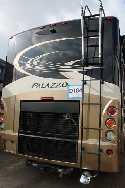 This 2013 Thor Palazzo is powered by a 300hp Cummins Engine On a Freightliner Chassis, Comforts include....2 Slide-outs, Onan Diesel Generator, 2 Ducted Roof A/Cs, Back-up and Side View Camera System, Levelers, Residential Double Door Refrigerator with Ice Maker, Slide Awnings, 2 Piece Washer/Dryer, CD Radio, Heated Tanks, Satellite Dish, 3 TVs, DVD Player, Outside Shower, Convection Microwave and 3 Burner Range. Enjoy your travels no matter the destination.